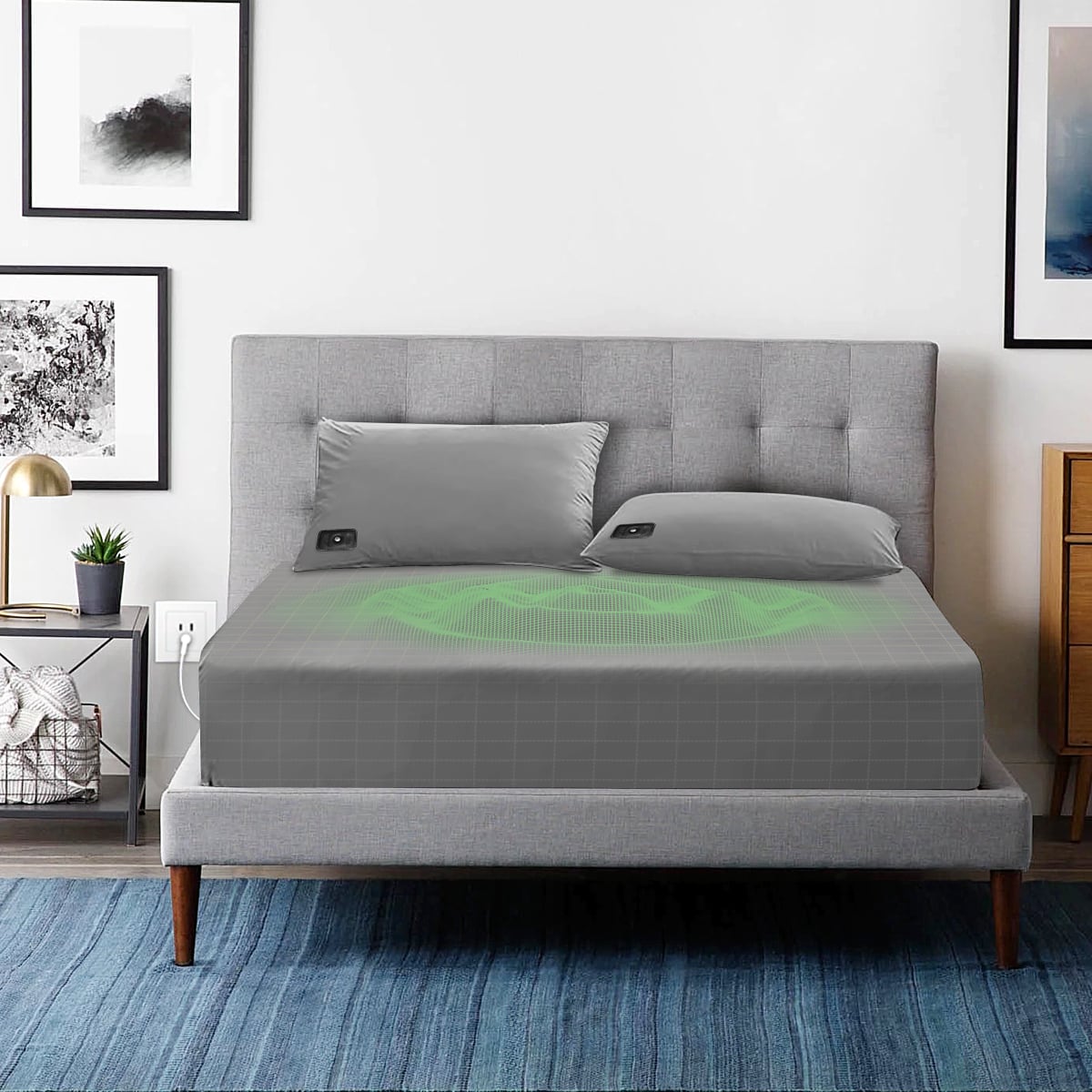 Absolutely. In fact, that's recommended. The grounding cord connects to a non-electrical safety ground, so there's no electricity flowing through it. Leaving it connected means you're grounded whenever you're in bed—whether sleeping, reading, or relaxing.